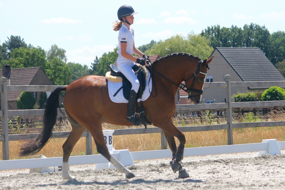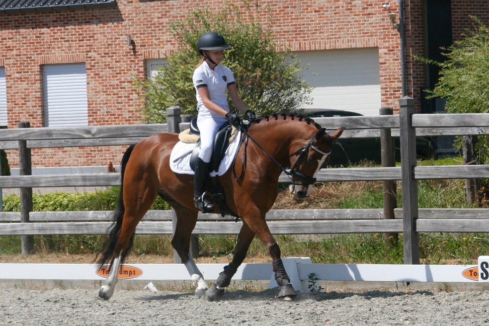 Naam: Parco Geboren: 29/03/2011 Kleur: Bruin Beschrijving: Wervel iets op de bovenste ooglijn, wit vlekje ter hoogte van de linker oogkuil Ras: Belgische rijpony | Geslacht: Man (Ruin) Niveau dressuur: FEI CDN | Niveau springen: B